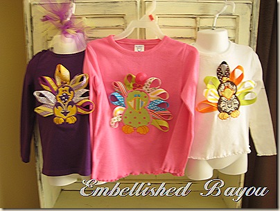 I’ve been holed up in my “sweat shop” the past couple of days, mainly working on these cute Ribbon Turkey T-shirts: